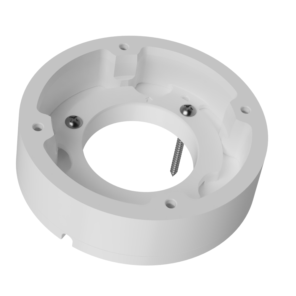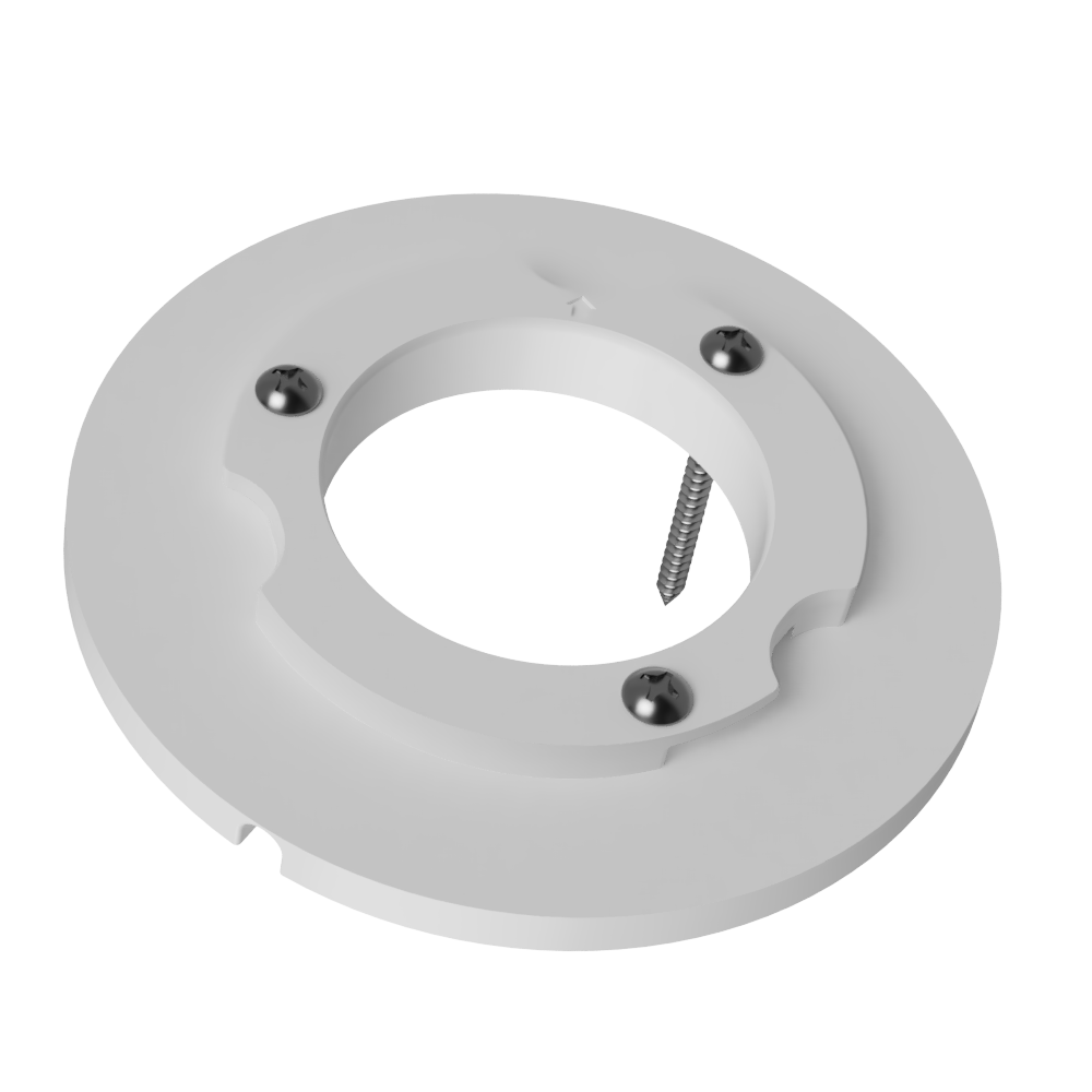 Dieser Adapter ermöglicht die sekundenschnelle und werkzeuglose Installation der MOBOTIX c71 NurseAssist-Kamera. Hauptbestandteil ist eine Schnellverschlussplatte, die an der Dichtung befestigt ist und die MXessories Deckenhalterung MX-LAN-Q71CMXL-W durch einfaches Drücken und Drehen des Adapters im Uhrzeigersinn fixiert. Zum Abnehmen drehen Sie ihn gegen den Uhrzeigersinn und ziehen ihn nach unten. Eine Abdeckung zum Verdecken der Schnellverschlussplatte und des Kabels ist im Lieferumfang enthalten, solange die Kamera nicht montiert ist.