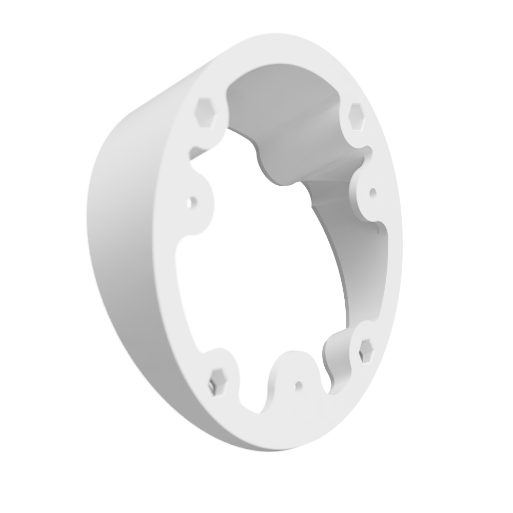 This adapter is designed for the MOBOTIX Q71 camera. It allows the camera to be mounted on the wall pointing 20° down to frame the scene in the center of the image.